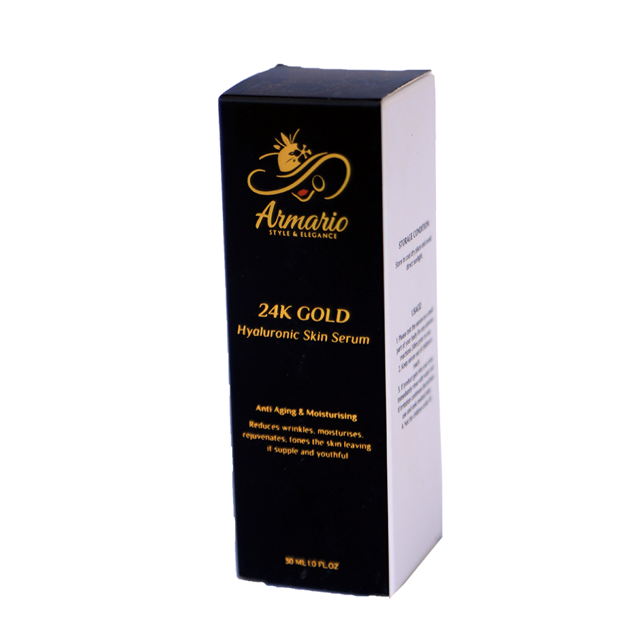 Super moisturising and anti aging 24K gold serum with real gold flakes adds an iluminating moisturising and anti aging effect to dull sallow skin. Also reduces fine lines and wrinkles and gives you youthful skin! Helps with skin tone, naturally adds a glow, clears skin and helps improve skin tightness. Contains hyaluronic acid and niacinamide that minimises pores, regulates oil and brings an overall youthful appearance.
